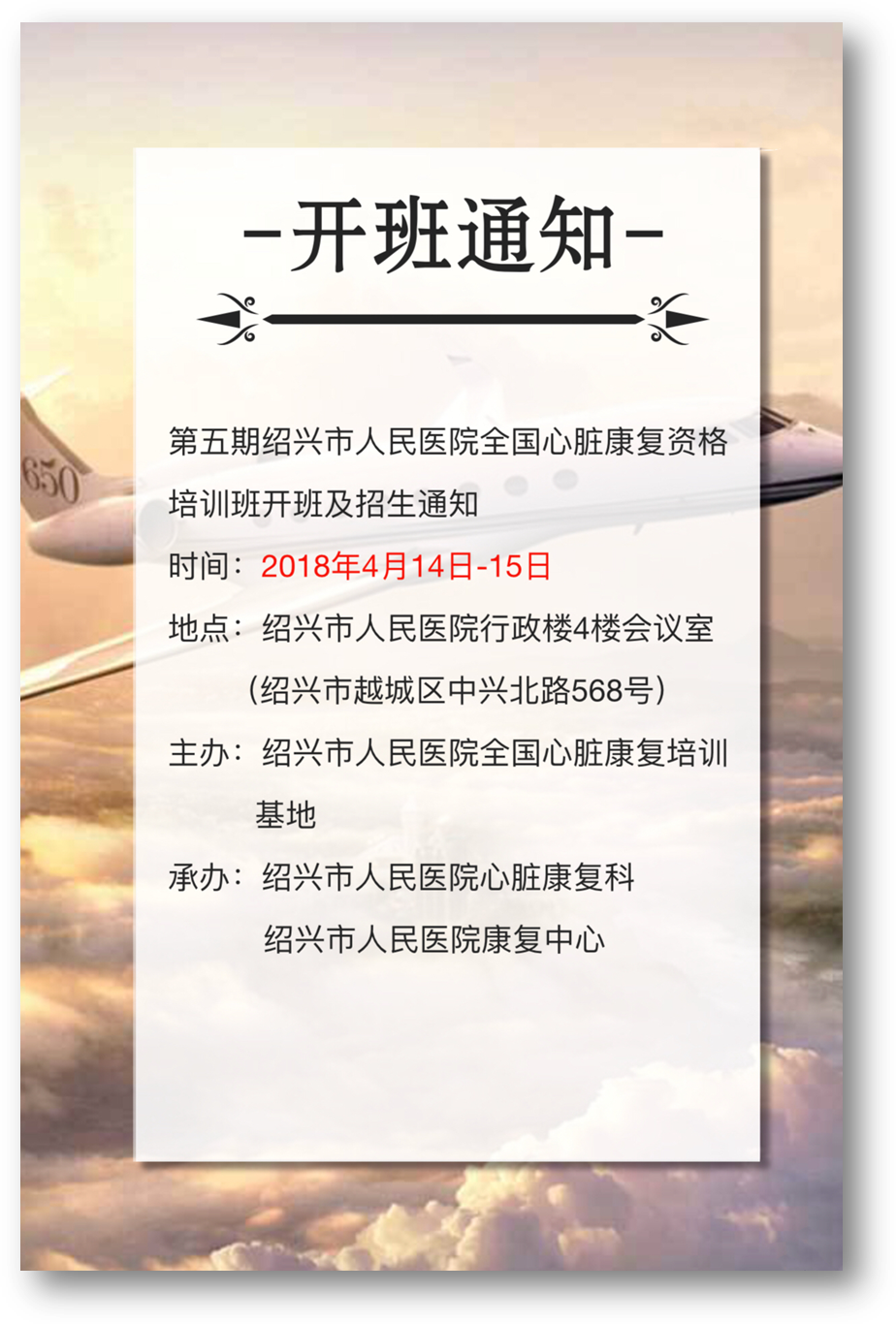 第五期 紹興市人民醫(yī)院全國心臟康復(fù)資格培訓(xùn)班招生通知